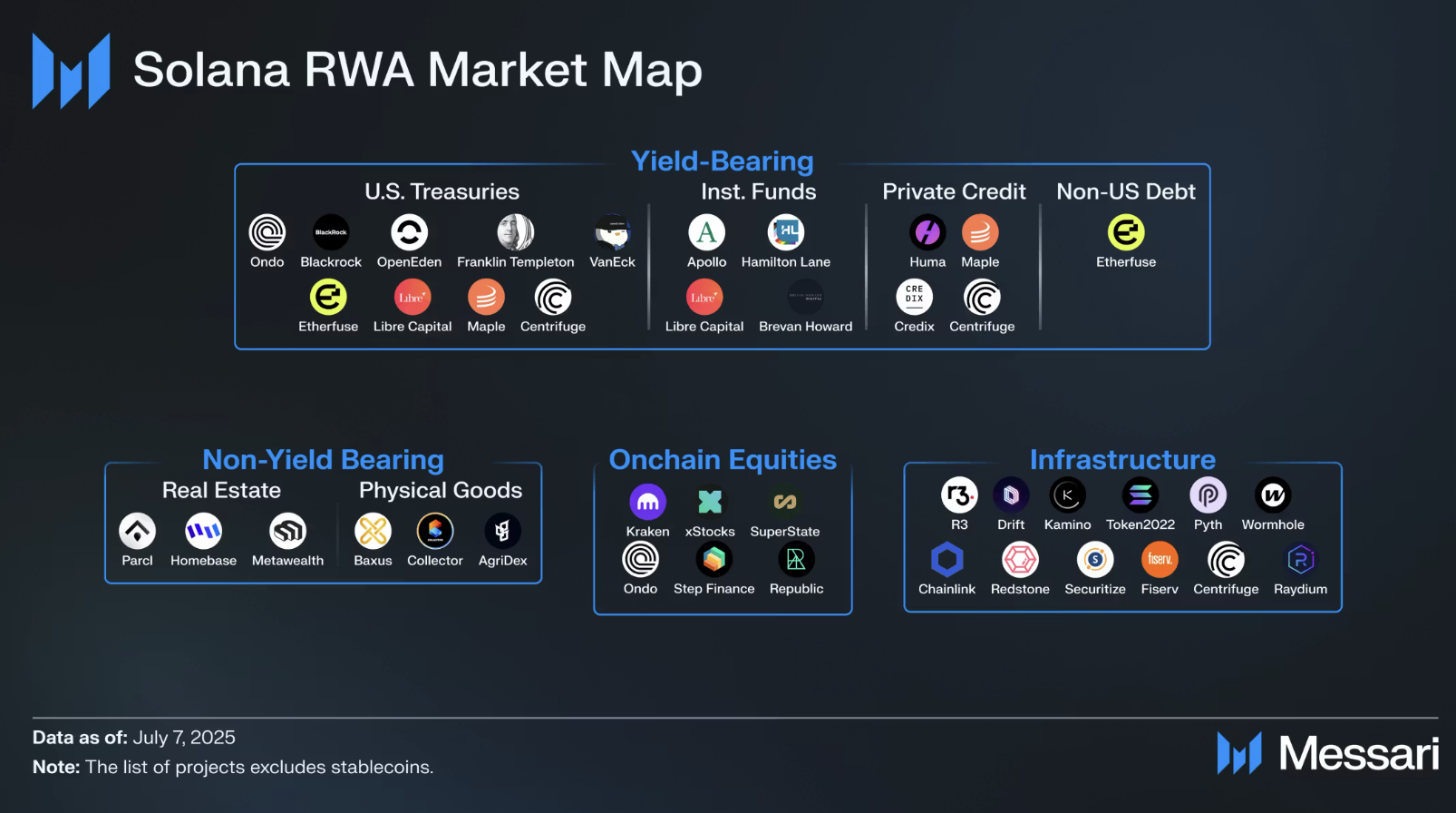 The two largest non-stablecoin RWA protocols on Solana are Ondo, via its U.S. Dollar Yield Fund, and ONe, through its institutional fund. Together, they account for $277 million in tokenized real-world assets on the network.