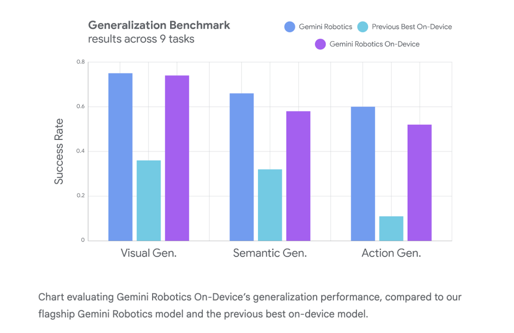 The on-device model retains the core strengths of Gemini Robotics: the ability to understand human instructions, perceive multimodal input (visual and textual), and generate real-time motor actions. It is also highly sample-efficient, requiring only 50 to 100 demonstrations to generalize new skills, making it practical for real-world deployment across varied settings.