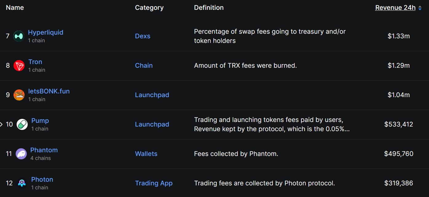 While LetsBonk’s daily revenue has spiked, Pump.fun continues to dominate on a longer time horizon. DefiLlama data shows Pump.fun recorded more than $37 million in revenue over the past 30 days, compared with LetsBonk’s $4.5 million.