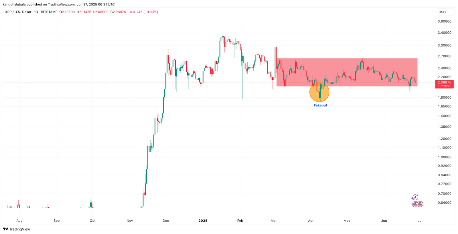 The recent pullback to $1.90 “set the stage for a faster bullish route to the upside,” the analyst said on X, adding the price had retested the key 0.618 Fibonacci level around $2.00.