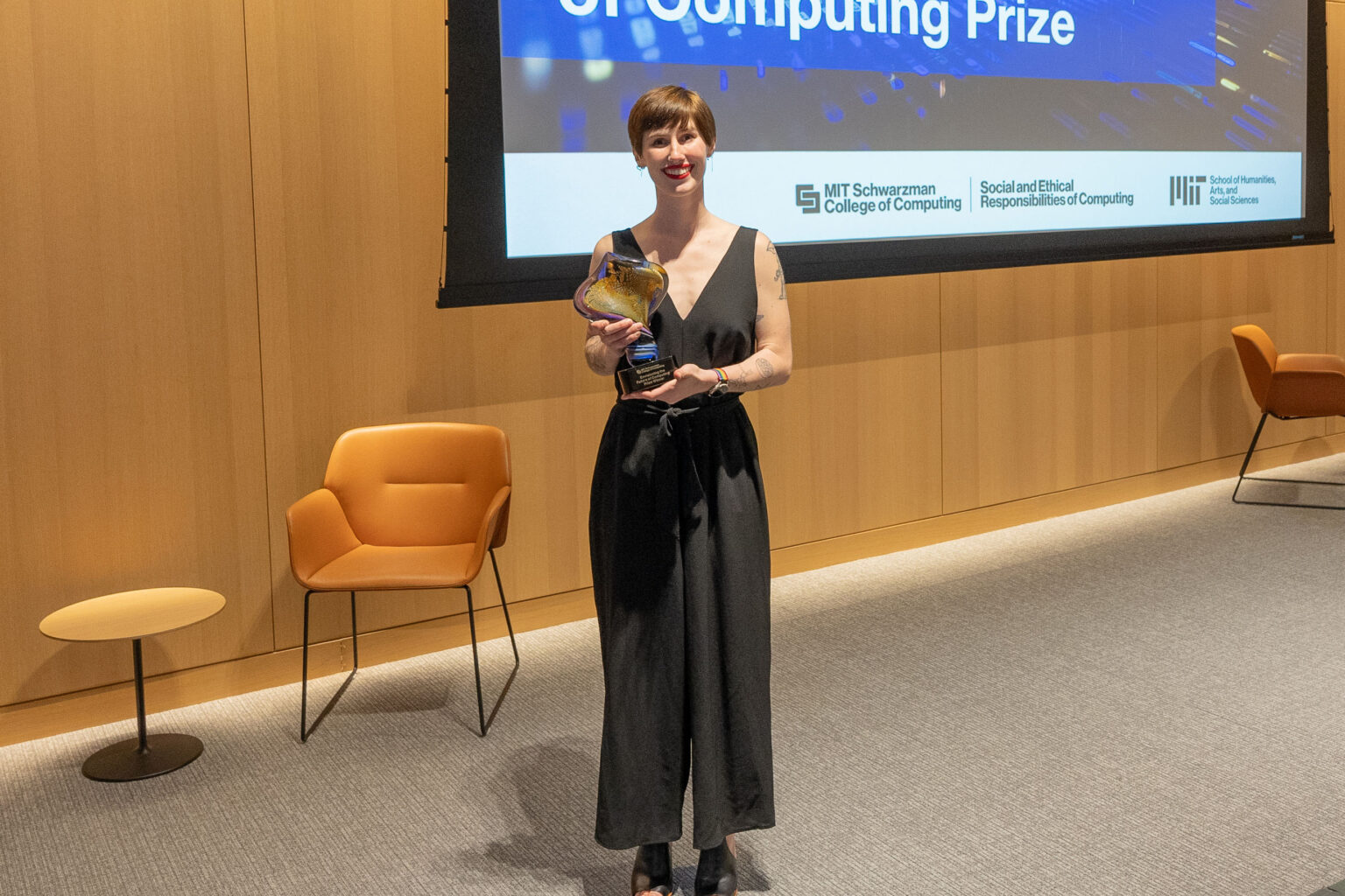 In early May, a live awards ceremony was held where the finalists were invited to give 20-minute presentations on their entries and took questions from the audience. Nearly 140 MIT community members, family members, and friends attended the ceremony in support of the finalists. The audience members and judging panel asked the presenters challenging and thoughtful questions on the societal impact of their fictional computing technologies.