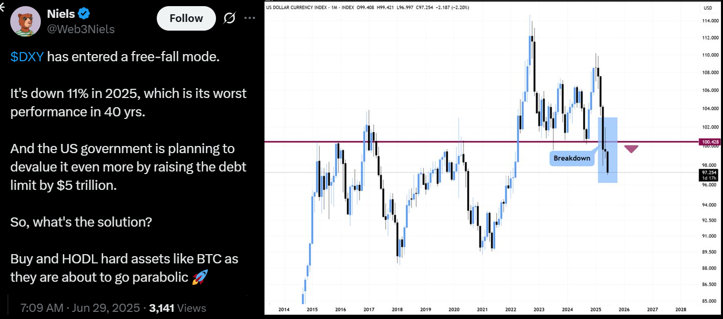 Many investors still classify Bitcoin as a risk-on asset rather than a fully uncorrelated financial alternative. With the Nasdaq 100 reaching an all-time high on June 30, investor confidence is rising, encouraging some to rotate out of fixed income and into higher-risk assets, potentially including Bitcoin.