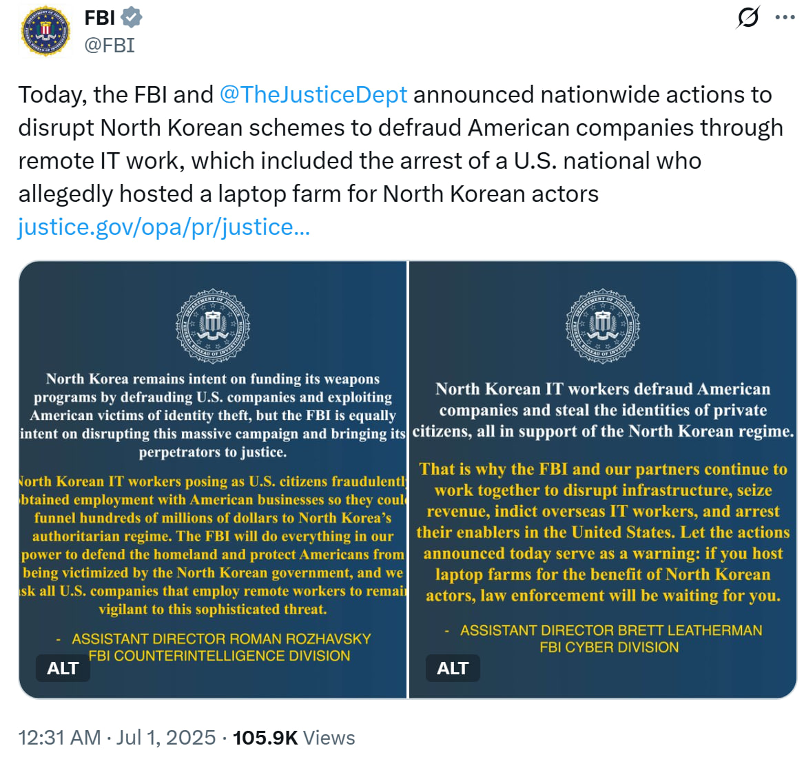 “These schemes target and steal from US companies and are designed to evade sanctions and fund the North Korean regime’s illicit programs, including its weapons programs,” said John A. Eisenberg, assistant attorney general for national security.