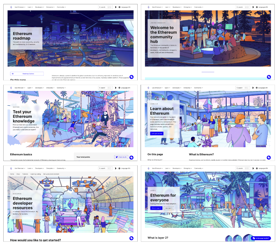 We entered our glow-up era by commissioning eight new illustrations to ethereum.org, now featured on pages across the site (see some: Layer 2, Developers’ home, Community Hub). Better than that, these artworks are open-source, and we encourage their use by the Ethereum community. Check out our assets page for more resources (and inspiration)!