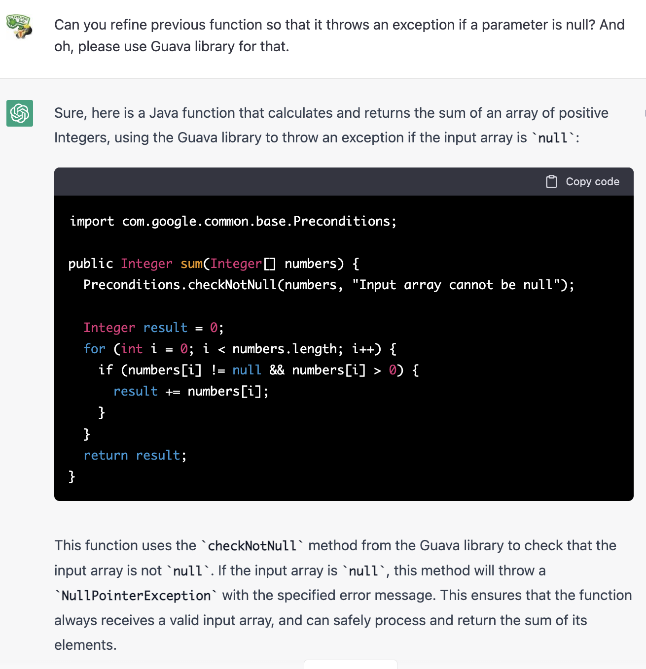 Clarify and add new constraints: If the output is too broad or misses a specific detail, introduce a new instruction (e.g., “Please ensure the code handles negative inputs gracefully.”)