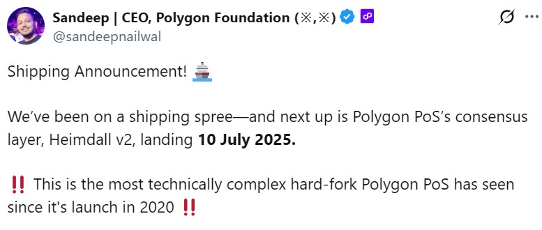 Nailwal also asked the community to prepare for temporary instability and to be cautious while the system upgrades its core consensus engine.