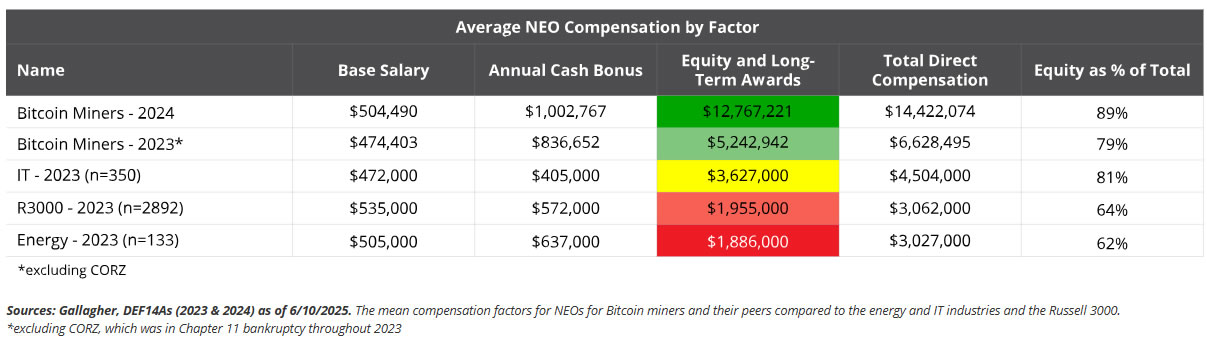 “As Bitcoin miners mature into large-scale infrastructure operators, their executive compensation programs must evolve as well,” they concluded.