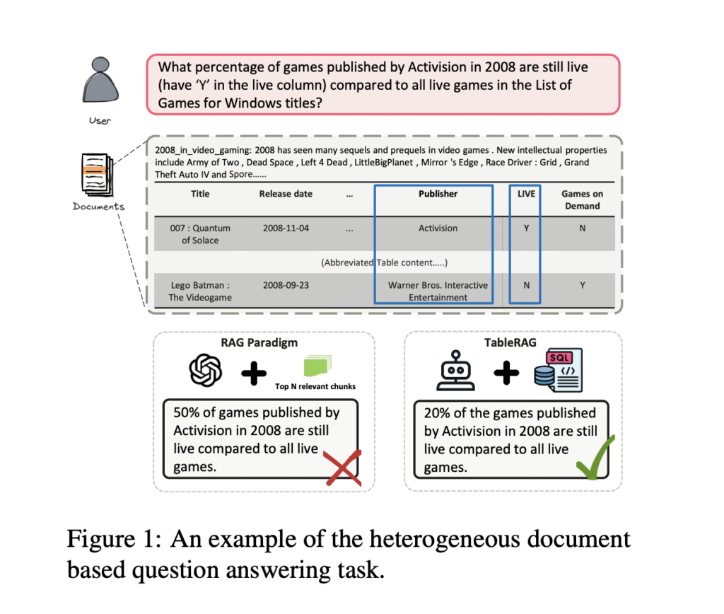 This AI Paper Introduces TableRAG: A Hybrid SQL and Text Retrieval Framework for Multi-Hop Question Answering over Heterogeneous Documents