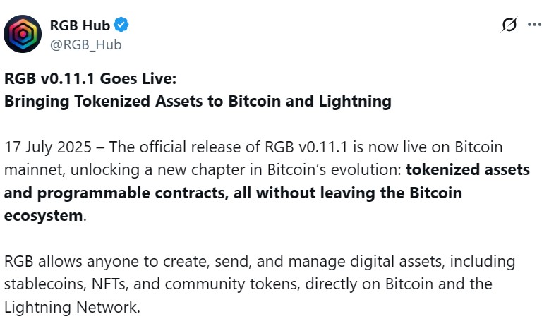 With the launch, prominent crypto organizations formed the RGB Protocol Association to coordinate and promote the development and adoption of RGB through education and funding.