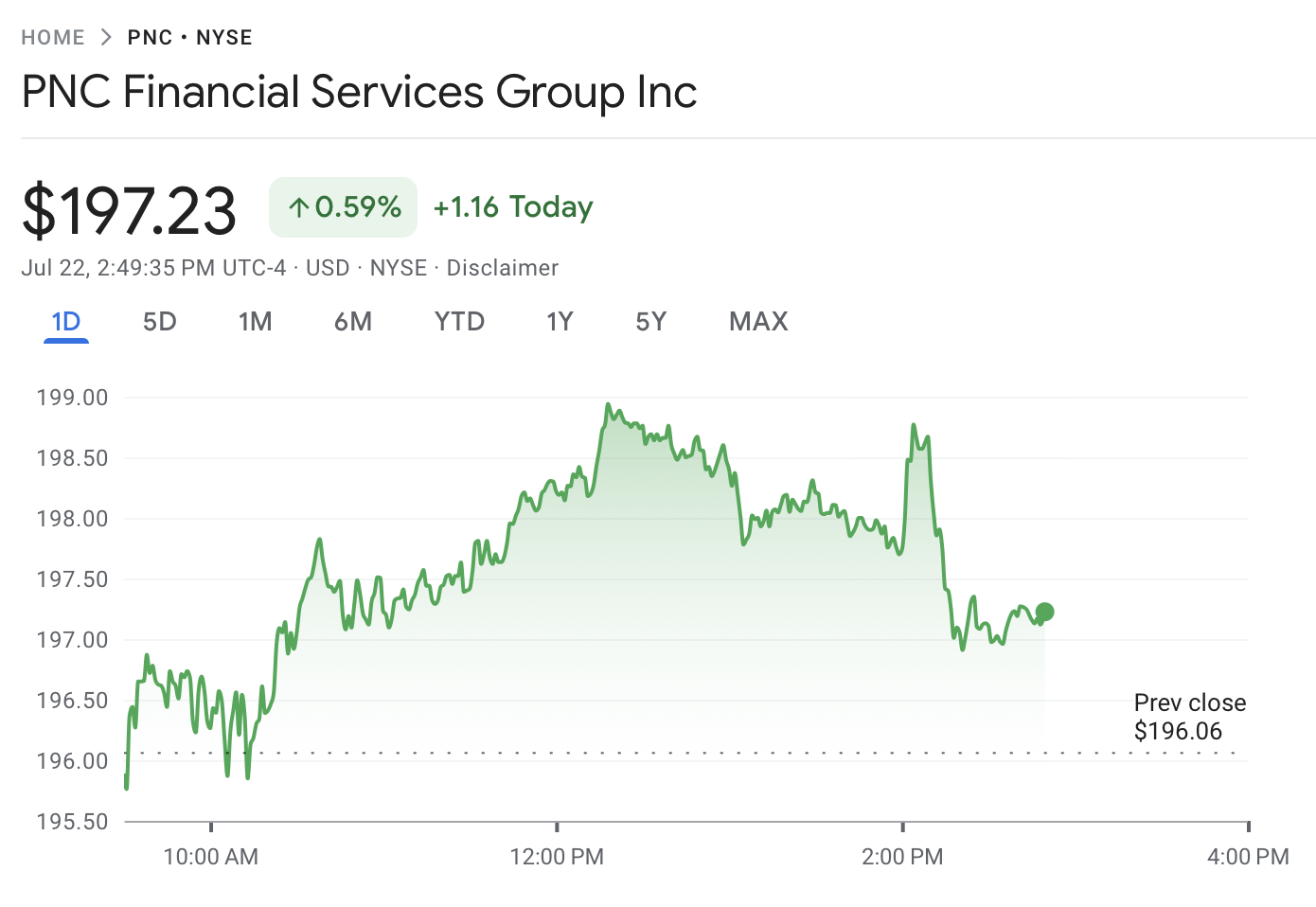 PNC Financial Services Group, the parent company of PNC Bank, was up 0.59% on the day Tuesday at time of publication, according to Google Finance.