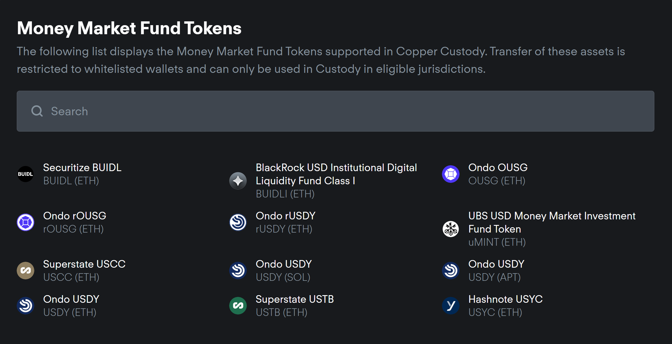 Money market fund tokens. Source: Copper.co