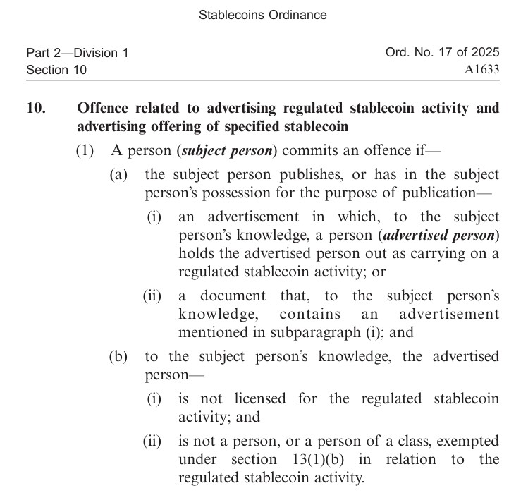 Hong Kong will start enforcing its Stablecoin Ordinance on Aug. 1, making it illegal to offer or promote unlicensed fiat-referenced stablecoins (FRS) to retail investors.