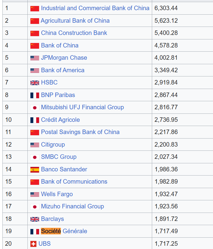 The top 20 largest banking conglomerates. Source: Wikipedia