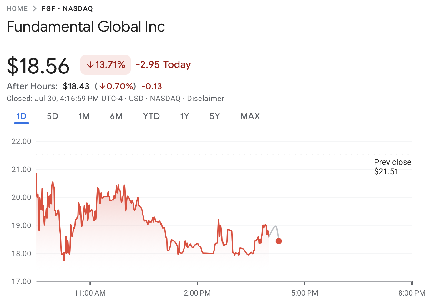 Fundamental Global’s share price on Wednesday. Source: Google Finance