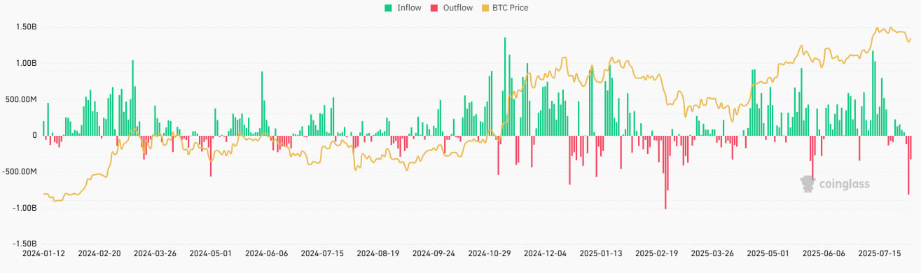 The reversals come as Bitcoin (BTC) fell further from its July 14 all-time high over the weekend, retreating 8.5% to bottom out at $112,300 on Sunday before recovering to $115,000 in late trading on Monday.