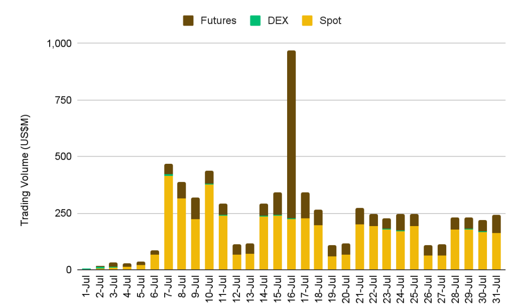“Though still small relative to the global equity market (valued at over US$100T), July’s explosive growth suggests tokenized equities may be nearing a major inflection point in the broader transition to hybrid finance.”