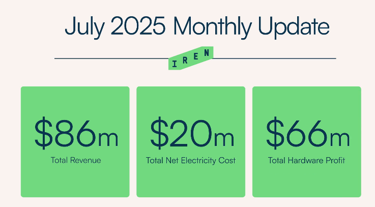 IREN said $2.3 million of its total $86 million revenue in July came from its expanding artificial intelligence cloud business, part of the firm’s plans to diversify beyond Bitcoin mining.