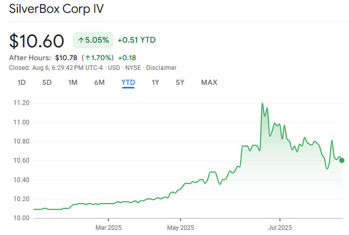 Shares in SilverBox Corp IV have made minor gains this year, down from an all-time high of $11.20 in June, to post gains of 5% since January.