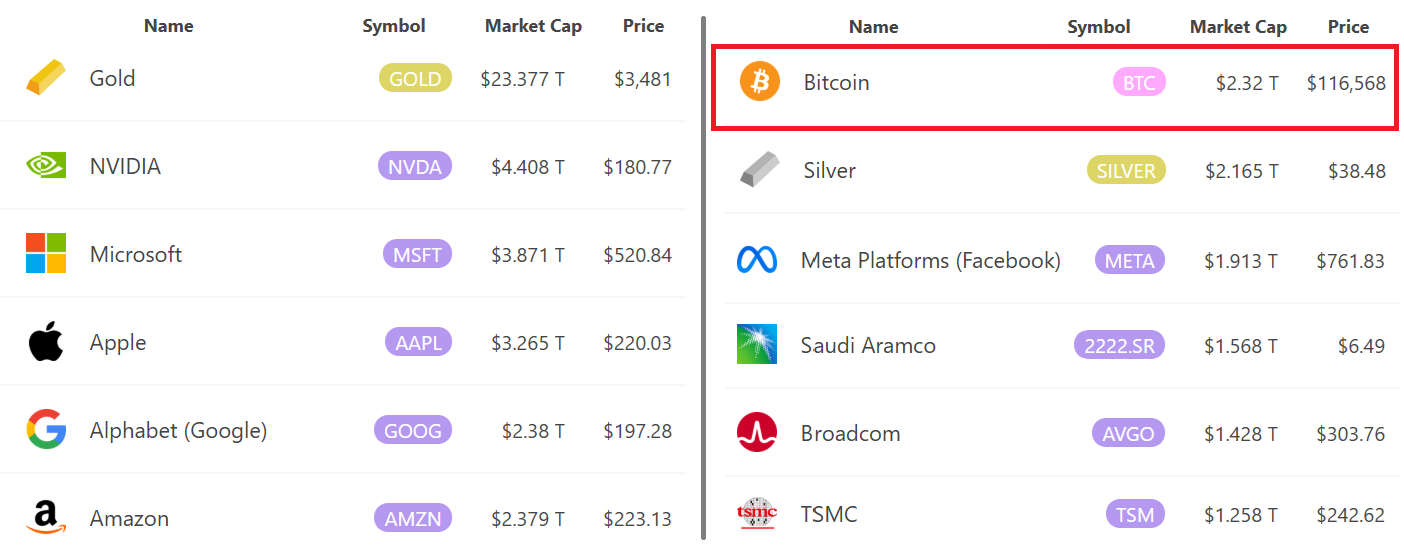 Largest tradable assets by capitalization, USD. Source: 8marketcap / Cointelegraph
