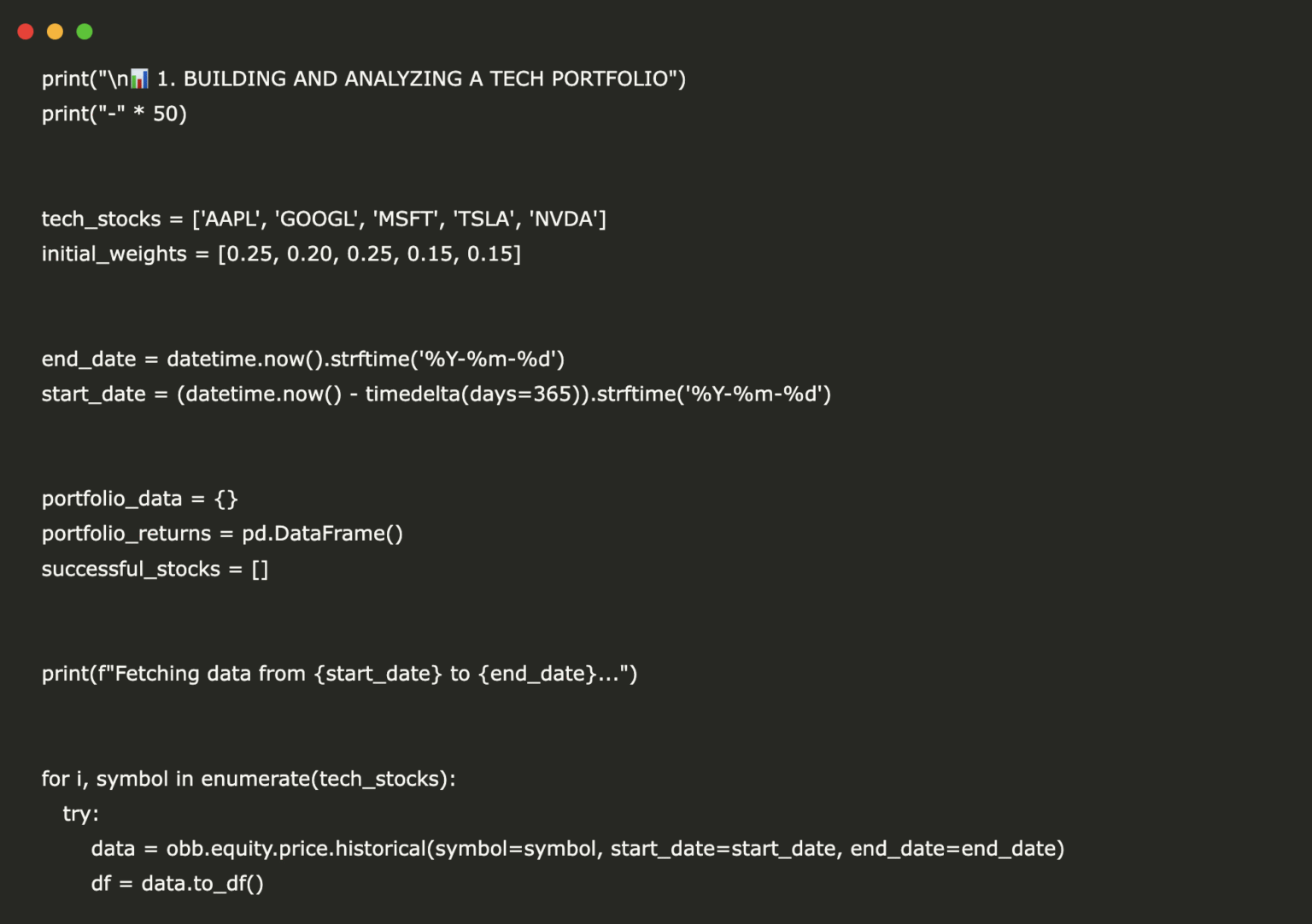 In this tutorial, we dive deep into the advanced capabilities of OpenBB to perform comprehensive portfolio analysis and market intelligence. We start by constructing a tech-focused portfolio, fetching historical market data, and computing key performance metrics. We then explore advanced technical indicators, sector-level performance, market sentiment, and correlation-based risk analysis. Along the way, we integrate visualizations and insights to make the analysis more intuitive and actionable, ensuring that we cover both the quantitative and qualitative aspects of investment decision-making. Check out the Full Codes here.