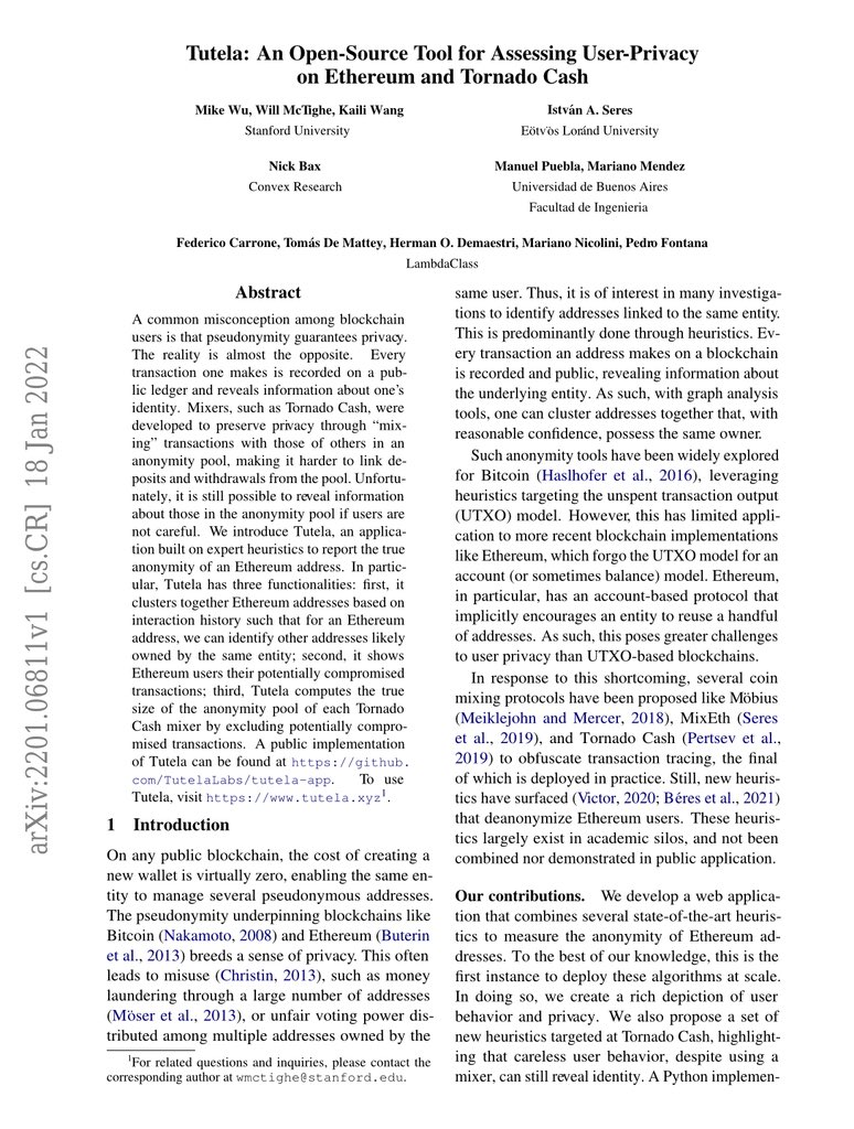The privacy-focused crypto research paper that Carrone believes led to his detention Source: Federico Carrone