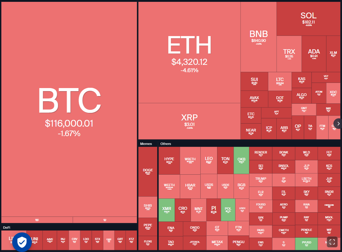 There is minor resistance at $118,575, but if the level is crossed, the BTC/USDT pair could rally to $120,000 and then challenge the all-time high of $124,474.
