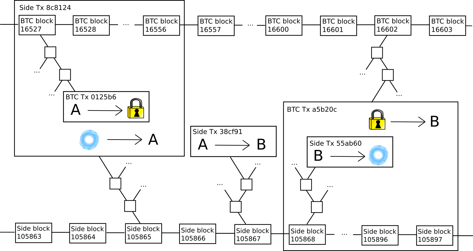 Sidechains are somewhat more complicated. The core underlying idea revolves around a « two-way-pegging » mechanism, where a « parent chain » (usually Bitcoin) and a « sidechain » share a common currency by making a unit of one convertible into a unit of the other. The way it works is as follows. First, in order to get a unit of side-coin, a user must send a unit of parent-coin into a special « lockbox script », and then submit a cryptographic proof that this transaction took place into the sidechain. Once this transaction confirms, the user has the side-coin, and can send it at will. When any user holding a unit of side-coin wants to convert it back into parent-coin, they simply need to destroy the side-coin, and then submit a proof that this transaction took place to a lockbox script on the main chain. The lockbox script would then verify the proof, and if everything checks out it would unlock the parent-coin for the submitter of the side-coin-destroying transaction to spend.