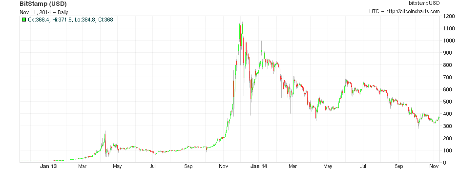 One of the main problems with Bitcoin for ordinary users is that, while the network may be a great way of sending payments, with lower transaction costs, much more expansive global reach, and a very high level of censorship resistance, Bitcoin the currency is a very volatile means of storing value. Although the currency had by and large grown by leaps and bounds over the past six years, especially in financial markets past performance is no guarantee (and by efficient market hypothesis not even an indicator) of future results of expected value, and the currency also has an established reputation for extreme volatility; over the past eleven months, Bitcoin holders have lost about 67% of their wealth and quite often the price moves up or down by as much as 25% in a single week. Seeing this concern, there is a growing interest in a simple question: can we get the best of both worlds? Can we have the full decentralization that a cryptographic payment network offers, but at the same time have a higher level of price stability, without such extreme upward and downward swings?