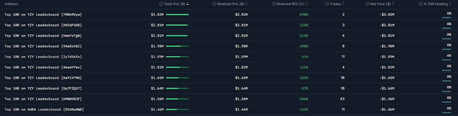 Top 10 YZY traders extracted more than $18 million. Source: Nansen