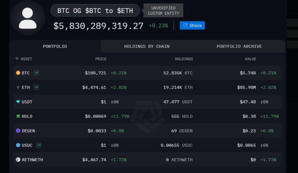 According to reports, one of the earliest and most influential Bitcoin whales bought roughly 820,220 ETH over the course of two weeks, a haul valued at about $3.6 billion at current prices.