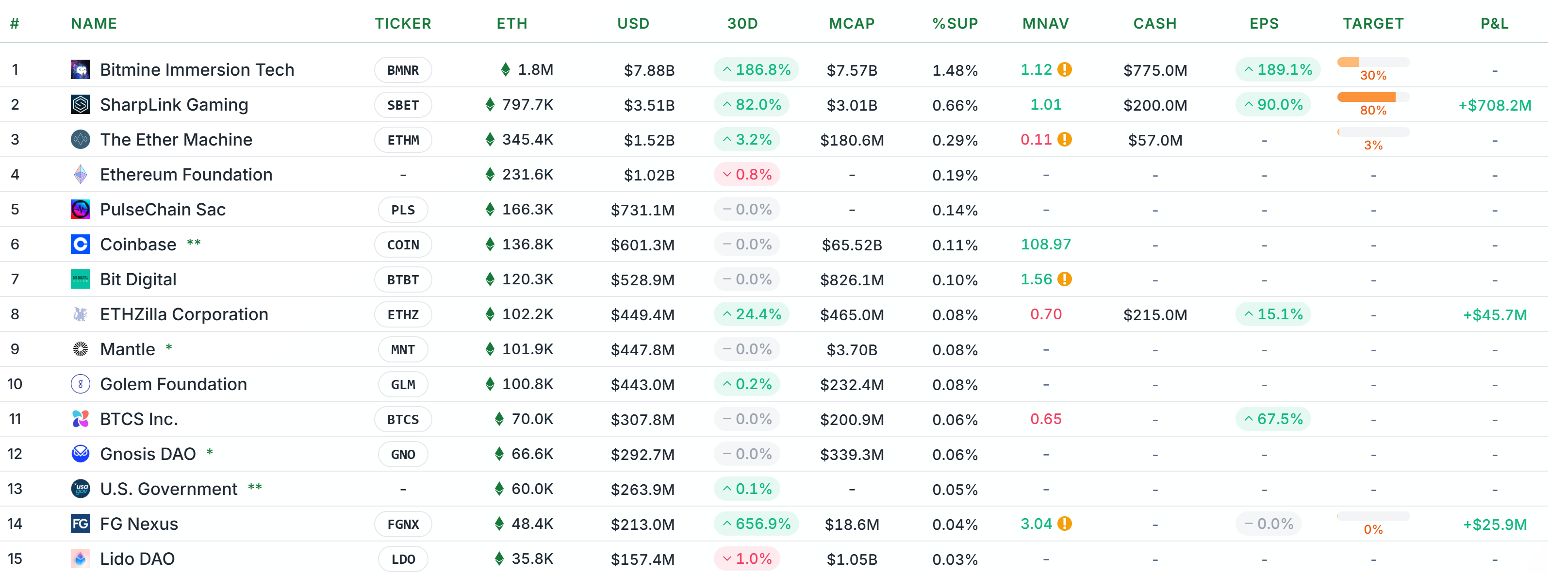Top 15 Ether treasury companies. Source: StrategicETHReserve