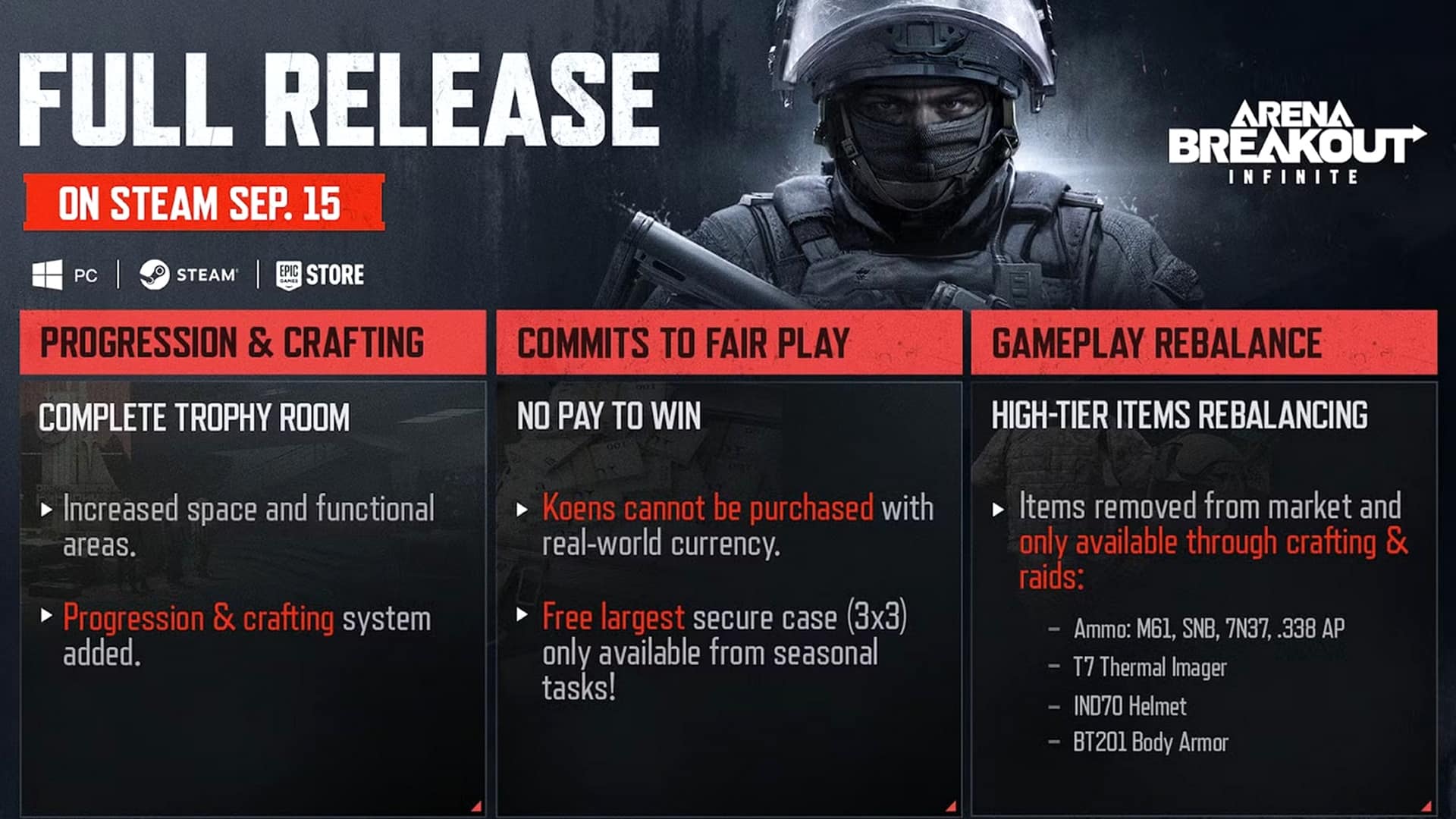 As the developers of the tactical shooter announced on X (formerly Twitter), Arena Breakout Infinite will be released as a “full release” on September 15, 2025 via Steam and the Epic Store.
