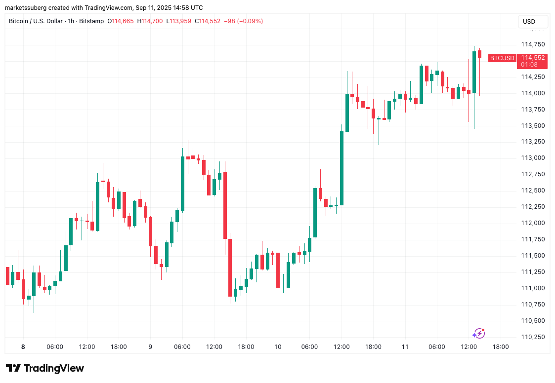Crypto commentators saw the case for higher prices next as Bitcoin passed $114,500 for the first time since Aug. 24.