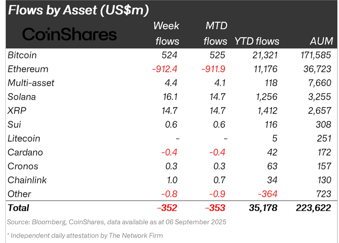 XRP exchange-traded products (ETPs) posted inflows totaling $14.7 million in the week ending Sept. 5, bringing their inflows for the year to $1.4 billion.