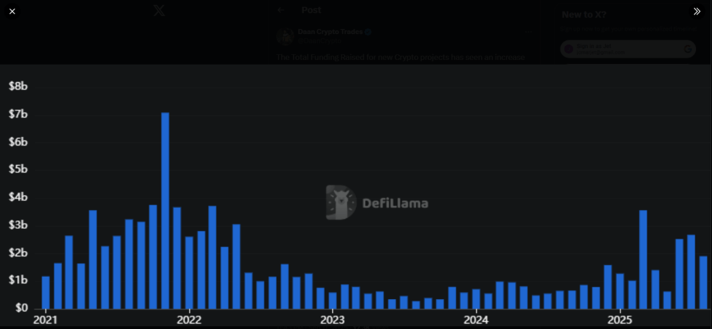 According to market analyst Daan Crypto Trades, funding has moved away from nonstop new-chain launches toward treasuries and teams building on existing projects.