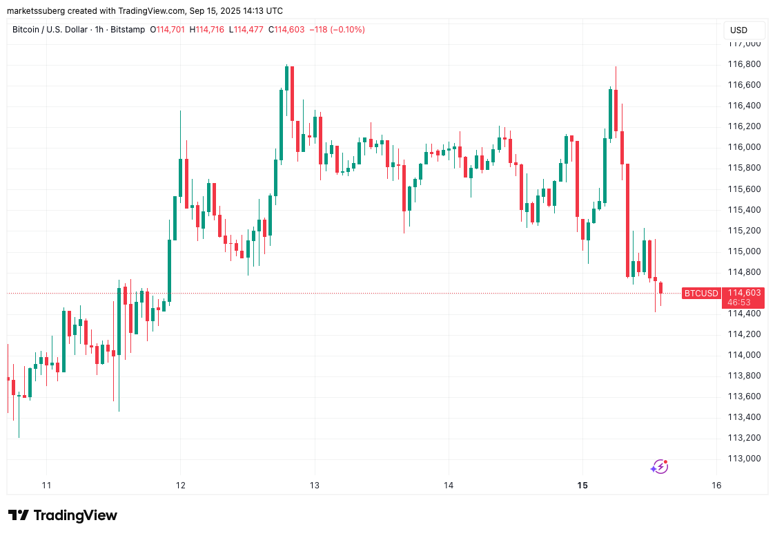 Bitcoin Dips Under $114.5K While Gold, Stocks Head Higher