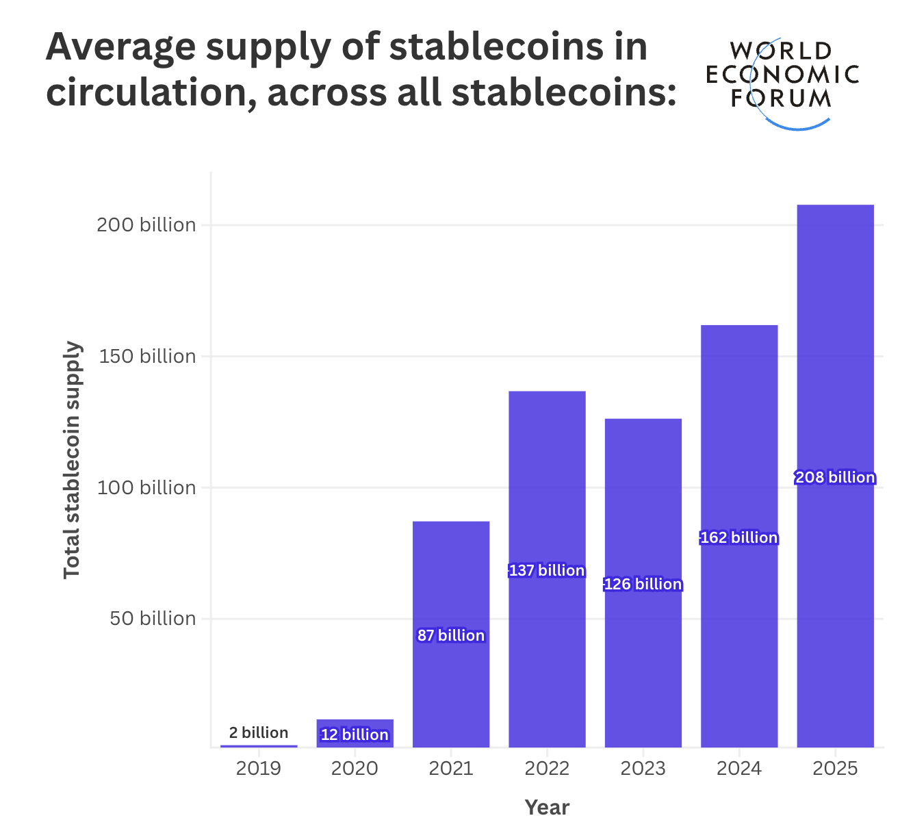The stablecoin industry is going from strength to strength, aided by increased regulatory clarity and meaningful use cases. The ability to facilitate swifter, more cost-effective transactions than traditional banking rails has accelerated their adoption worldwide. The total value in circulation is estimated to be north of $200 billion.