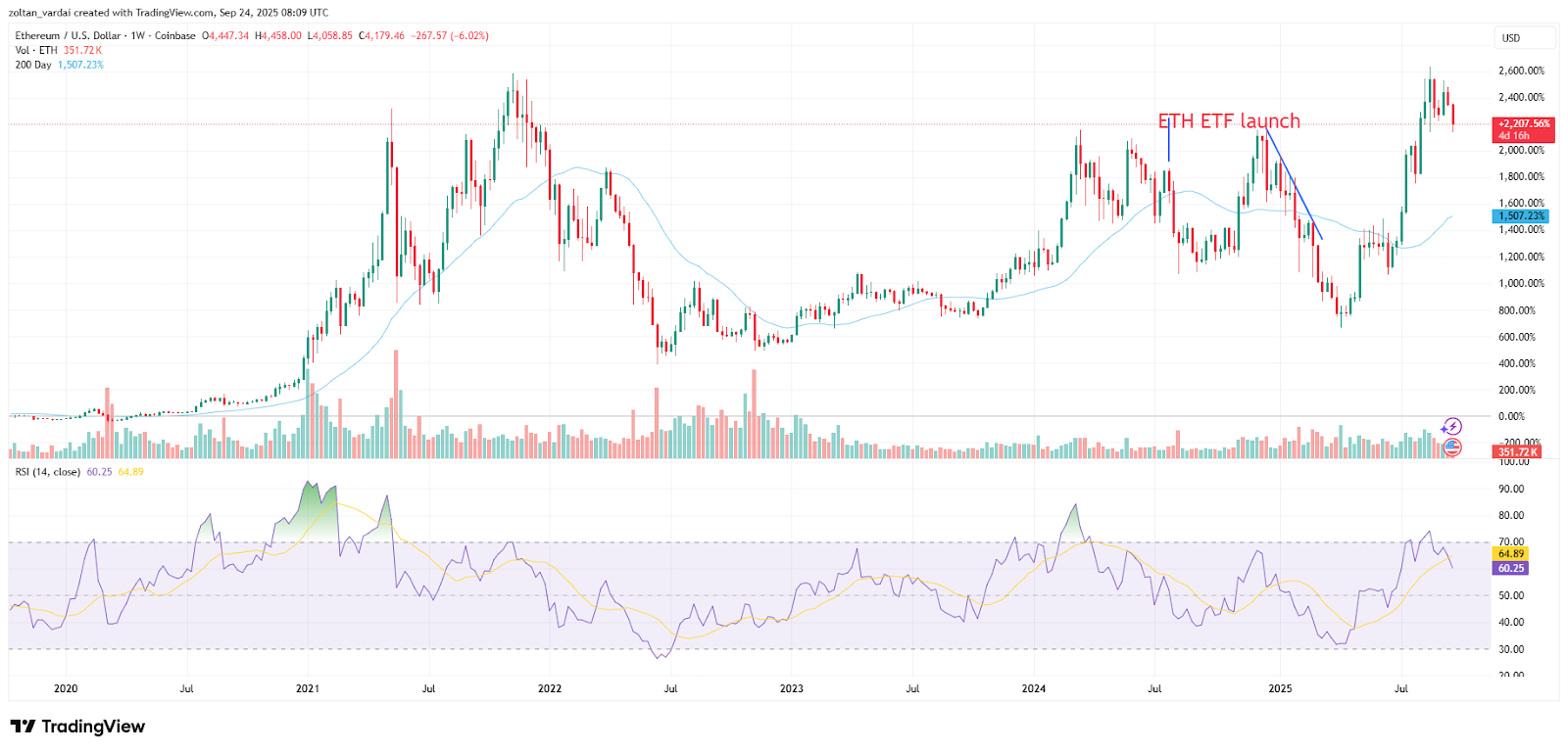 Ether has rise by around 108% in the past six months and traded at $4,177 at the time of writing, TradingView data shows.