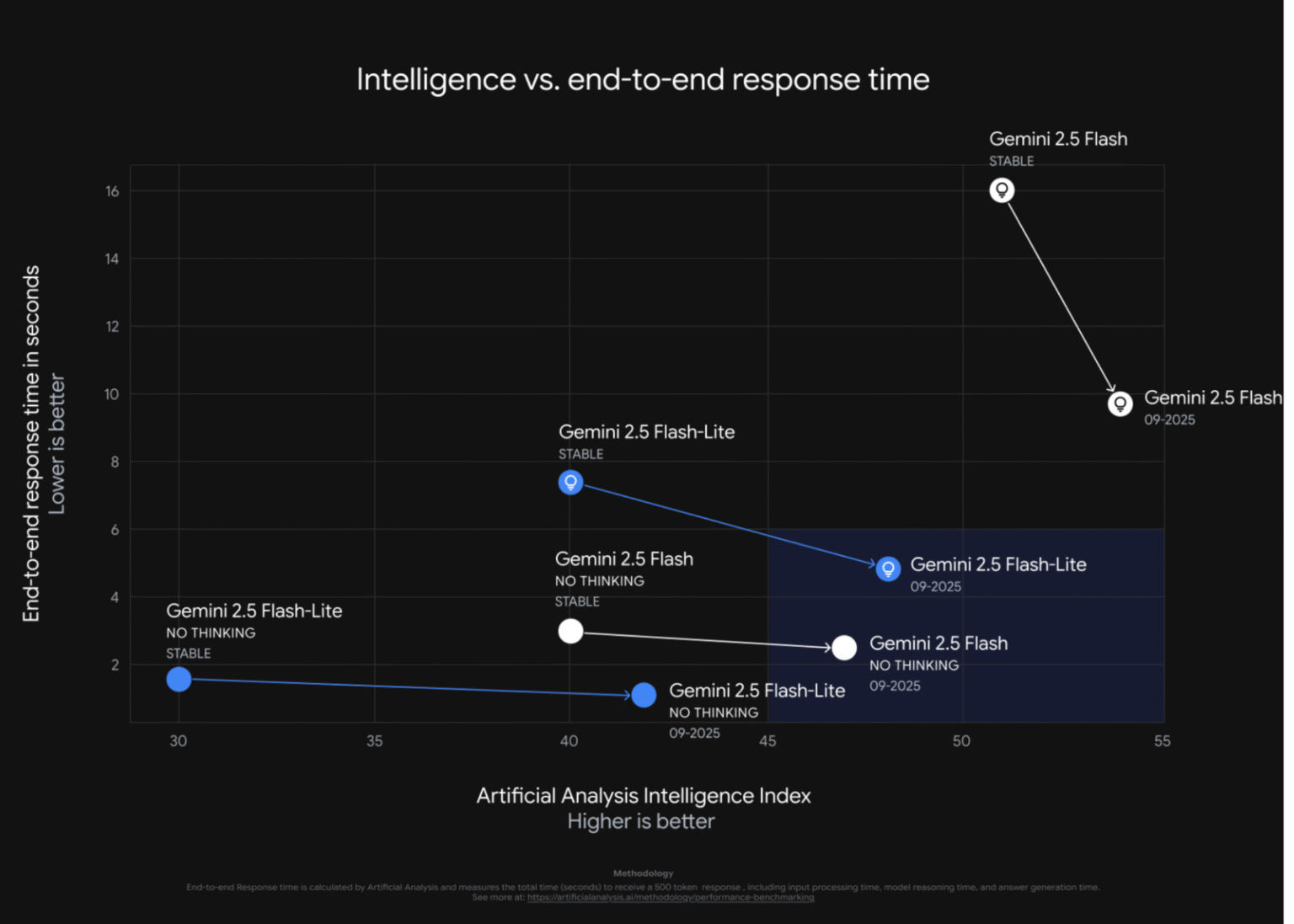 Google’s new release update tightens tool-use competence (Flash) and token/latency efficiency (Flash-Lite) and introduces -latest aliases for faster iteration. External benchmarks from Artificial Analysis indicate meaningful throughput and intelligence-index gains for the Sept 2025. previews, with Flash-Lite now testing as the fastest proprietary model in their harness. Validate on your workload—especially browser-agent stacks—before committing to the aliases in production.
