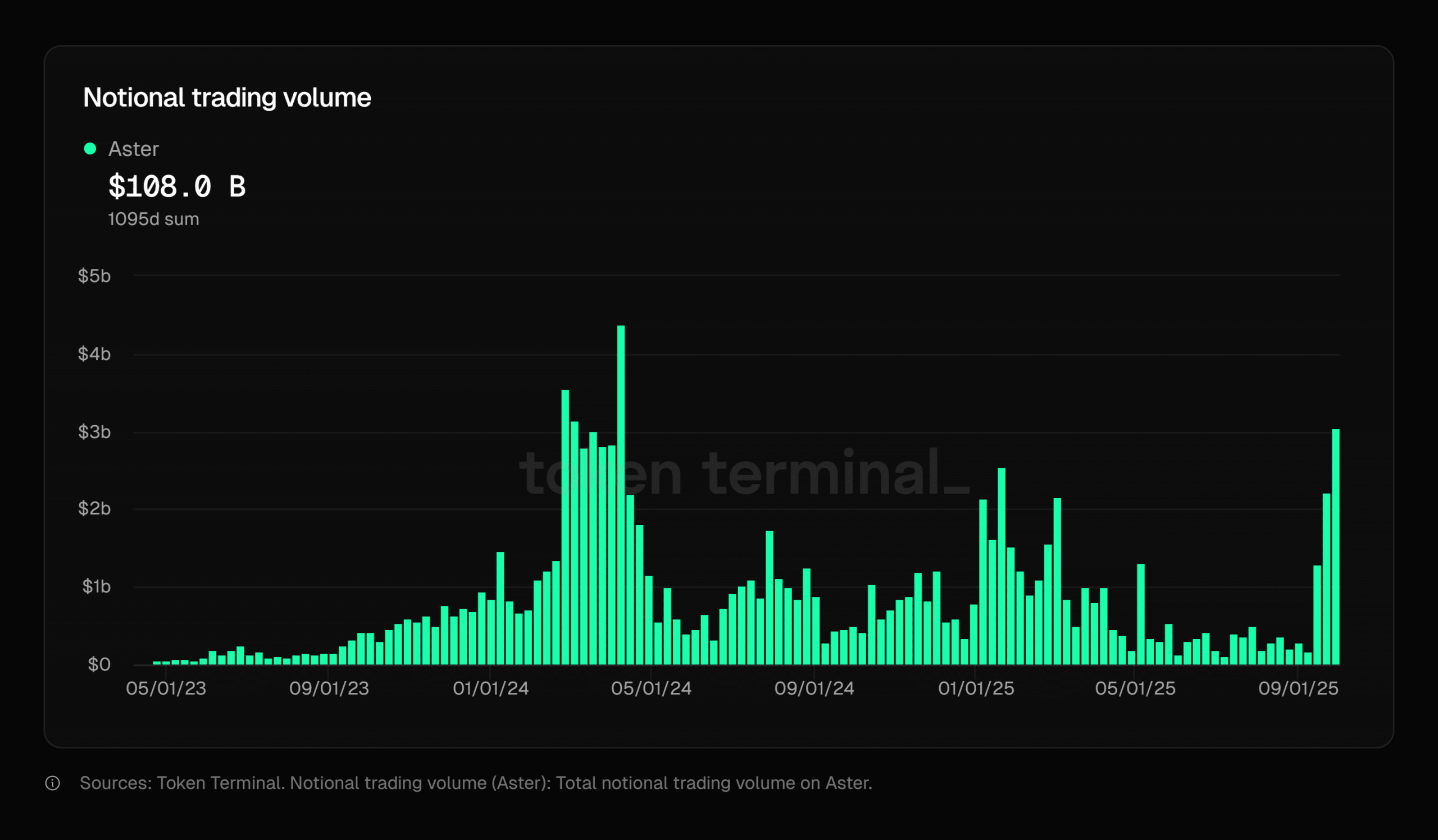 Aster, a decentralized perpetual exchange, has reached a total trading volume of $108 billion, according to data from Token Terminal. The milestone shows how quickly Aster is growing as more traders use its platform in 2025.