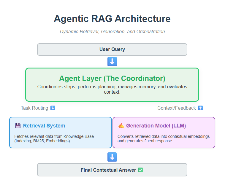 Together, these components allow Agentic RAG to deliver smarter, more contextual answers than traditional RAG systems.