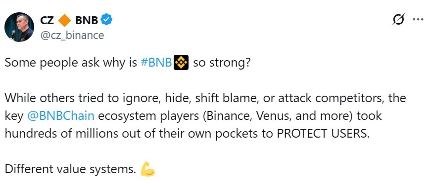 While some community members doubt why BNB was “barely affected” by the crash, Binance co-founder Changpeng Zhao defended the asset, saying that BNB was strong because BNB Chain’s ecosystem players “took hundreds of millions out of their own pockets to protect users.”