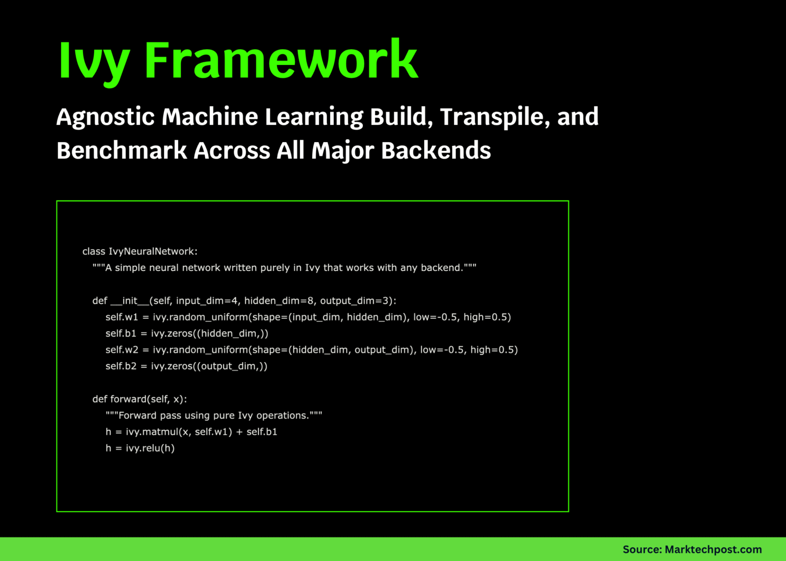 In this tutorial, we explore Ivyβs remarkable ability to unify machine learning development across frameworks. We begin by writing a fully framework-agnostic neural network that runs seamlessly on NumPy, PyTorch, TensorFlow, and JAX. We then dive into code transpilation, unified APIs, and advanced features like Ivy Containers and graph tracing, all designed to make deep learning code portable, efficient, and backend-independent. As we progress, we witness how Ivy simplifies model creation, optimization, and benchmarking without locking us into any single ecosystem. Check out theΒ FULL CODES here.