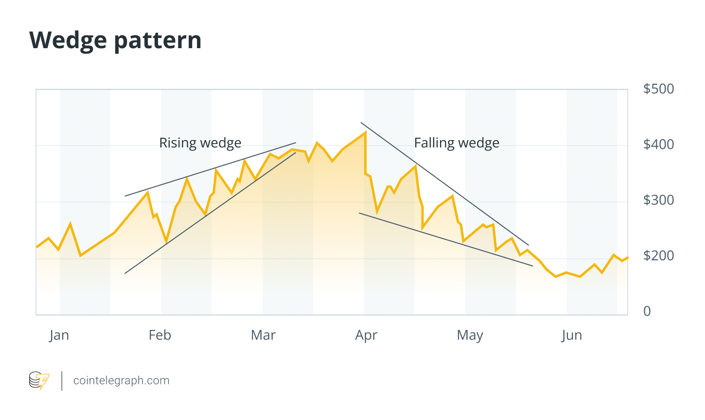 Wedge patterns form when price action creates converging trendlines that slope either upward (rising wedge, typically bearish) or downward (falling wedge, typically bullish).