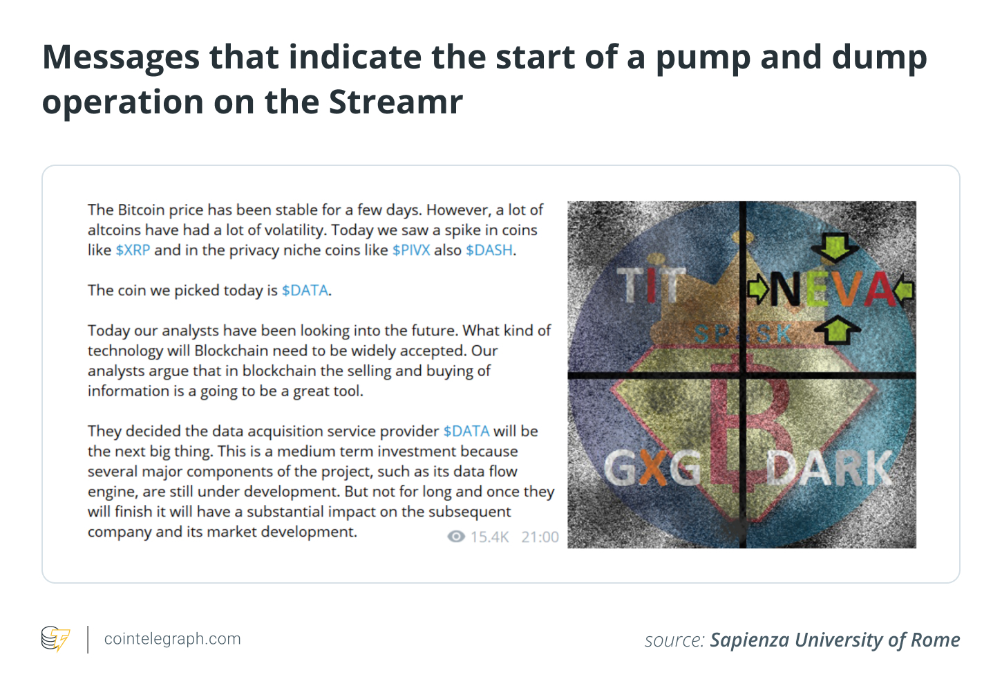 Coordinated posts: A sudden wave of identical social media posts, threads or Telegram messages appearing just before sharp price movements.