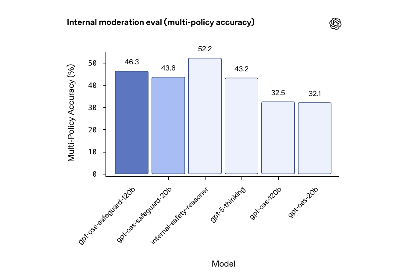 - On internal multi policy evaluations and on the 2022 moderation dataset, the safeguard models outperform gpt-5-thinking and the gpt-oss baselines, but OpenAI notes that the small margin over the internal Safety Reasoner is not statistically significant.