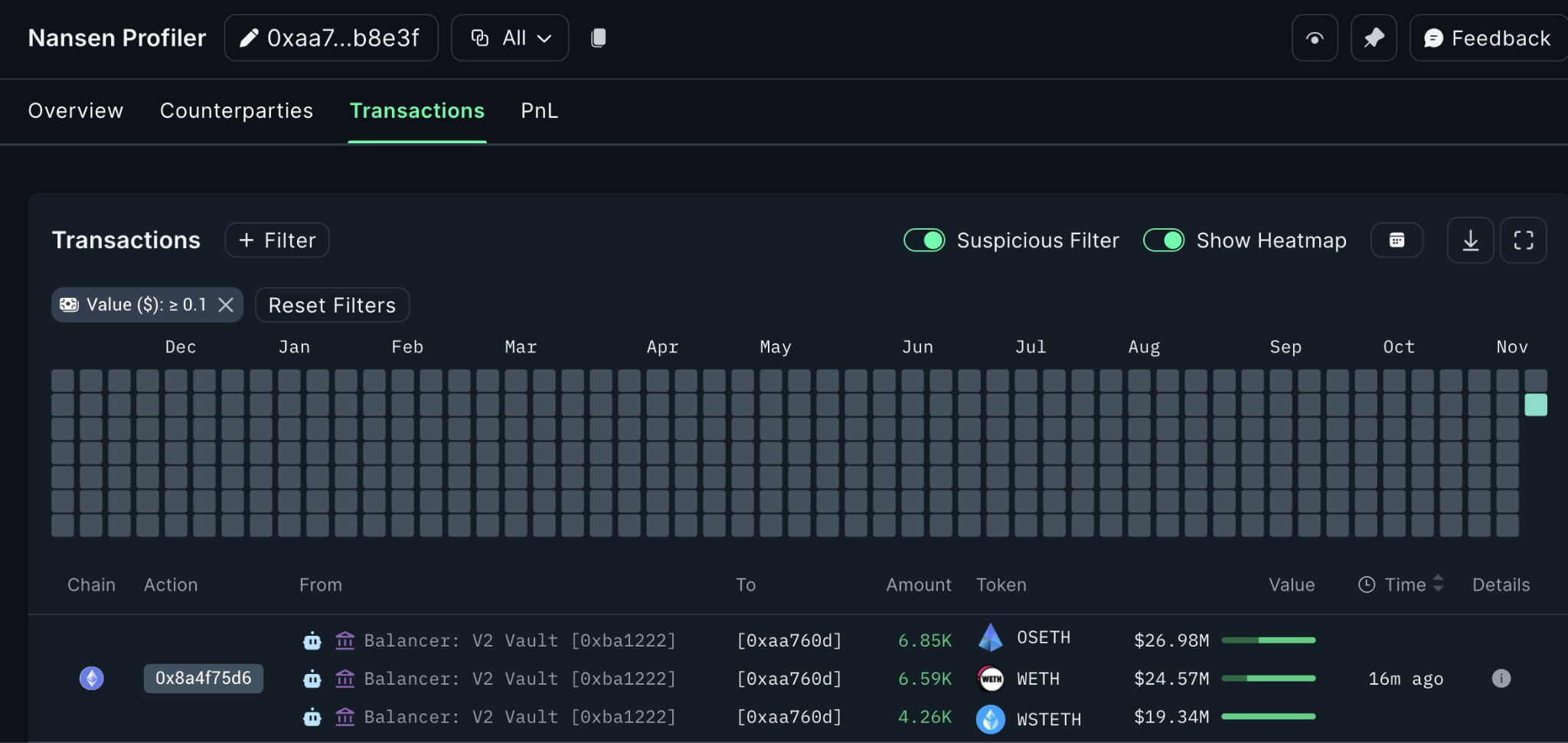 The transfers included 6,850 StakeWise Staked ETH (OSETH), 6,590 Wrapped Ether (WETH) and 4,260 Lido wstETH (wSTETH), crypto intelligence platform Nansen said in a Monday X post.