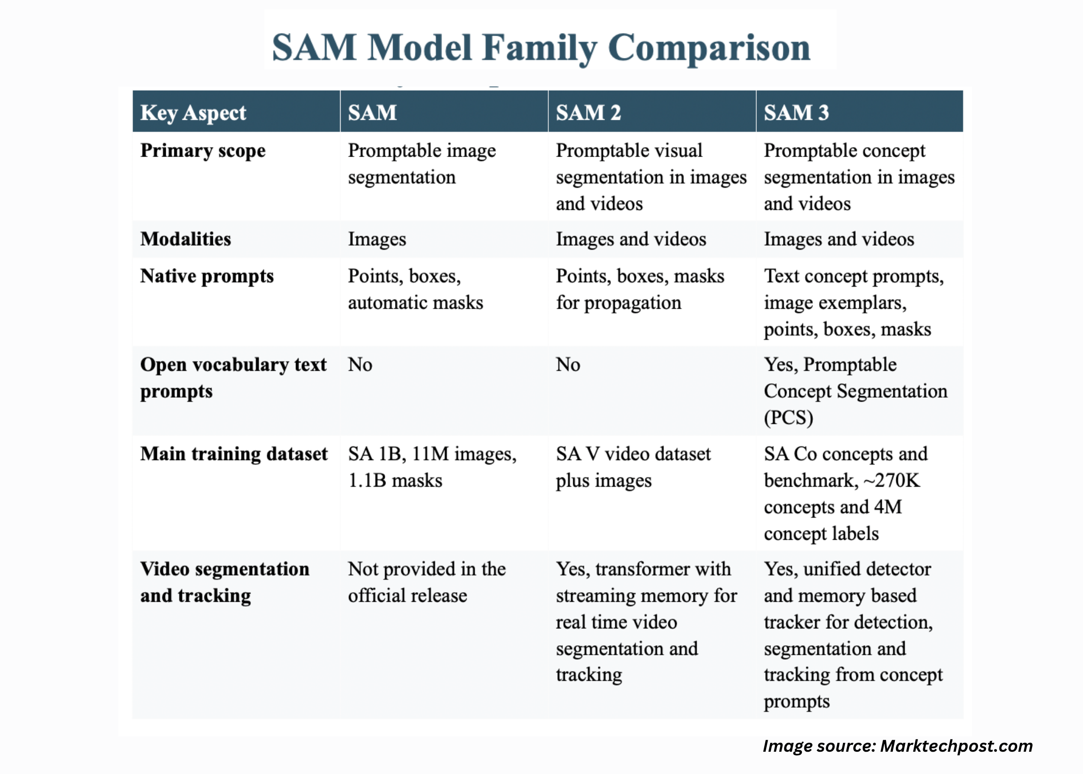 For data-centric platforms like Encord, SAM 3 is a natural next step after their existing integrations of SAM and SAM 2 for auto-labeling and video tracking, which already let customers auto-annotate more than 90 percent of images with high mask accuracy using foundation models inside Encord’s QA driven workflows. Similar platforms such as CVAT, SuperAnnotate and Picsellia are standardizing on Segment Anything style models for zero shot labeling, model in the loop annotation and MLOps pipelines. SAM 3’s promptable concept segmentation and unified image video tracking create clear editorial and benchmarking opportunities here, for example, quantifying label cost reductions and quality gains when Encord like stacks move from SAM 2 to SAM 3 in dense video datasets or multimodal settings.