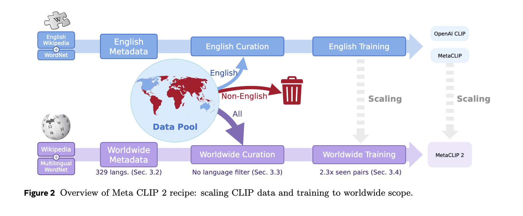Meta CLIP 2: The First Contrastive Language-Image Pre-training (CLIP) Trained with Worldwide Image-Text Pairs from Scratch
